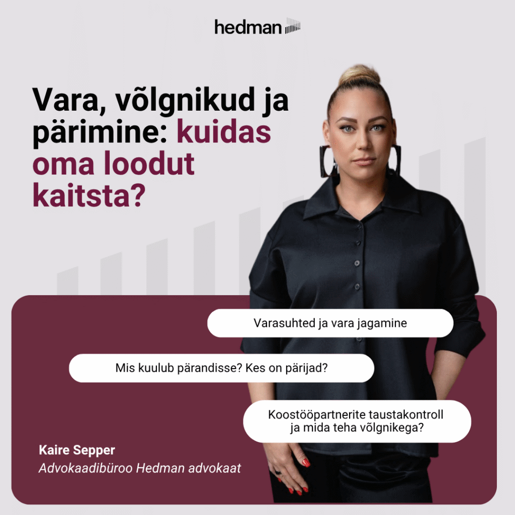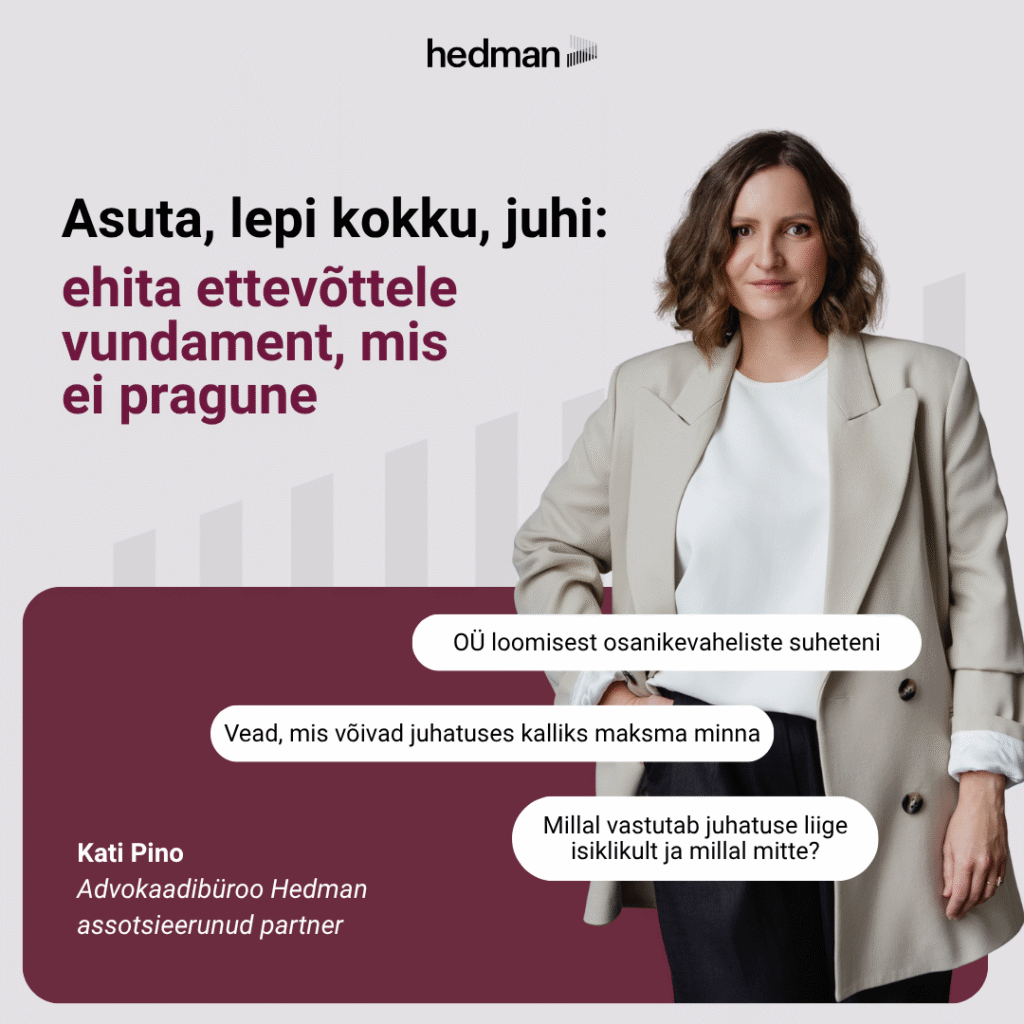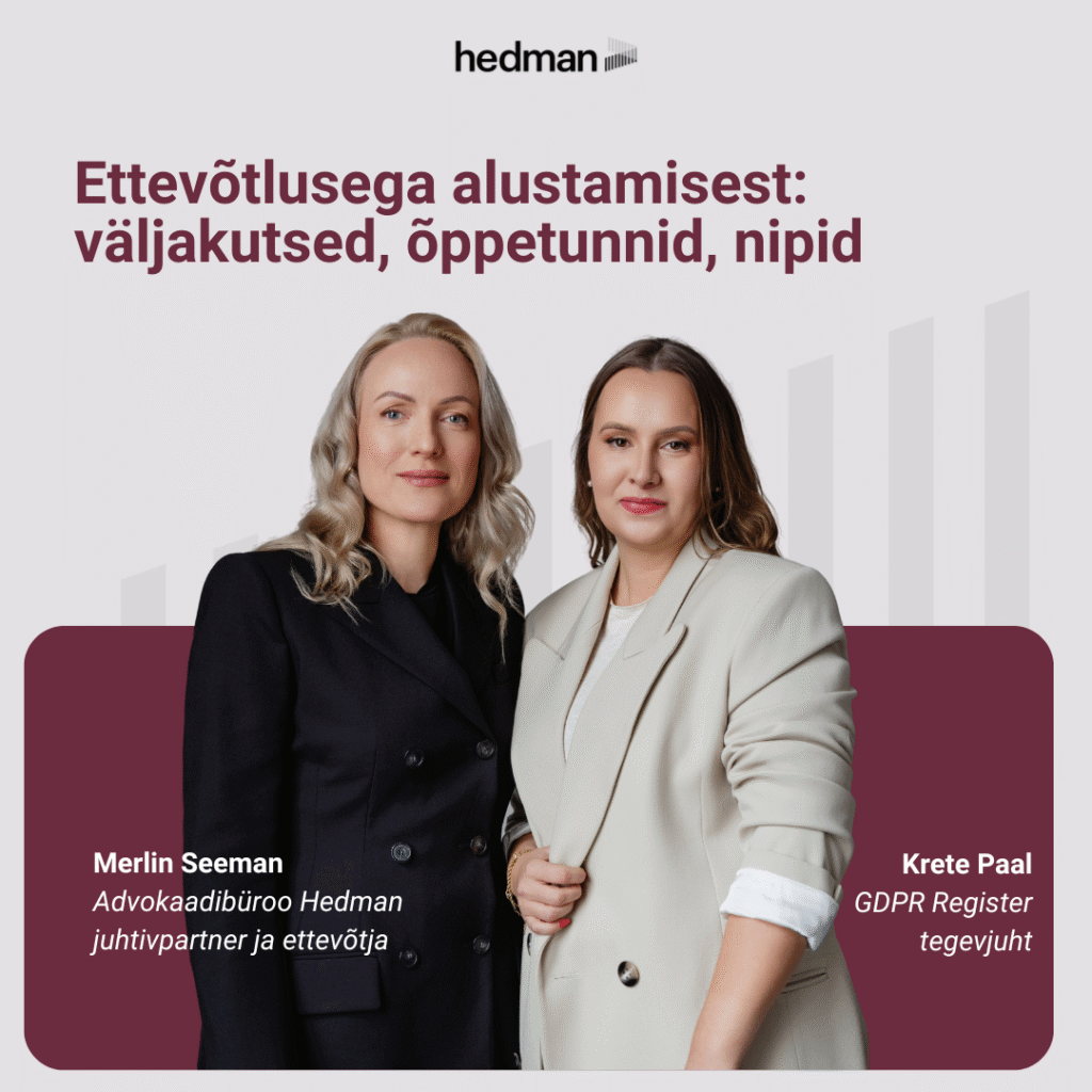 Hedmani advokaadid töötavad igapäevaselt idufirmade, kasvavate ettevõtete ja kogenud juhtidega. Me näeme lähedalt, mis on need juriidilised komistuskivid, mis võivad peatada häid ideid, keerata sõprussuhted tülideks või seada löögi alla aastatepikkuse töö. Liiga tihti on just enesekindluse ja teadmiste puudumine see, mis takistab naistel järgmisi samme astumast.